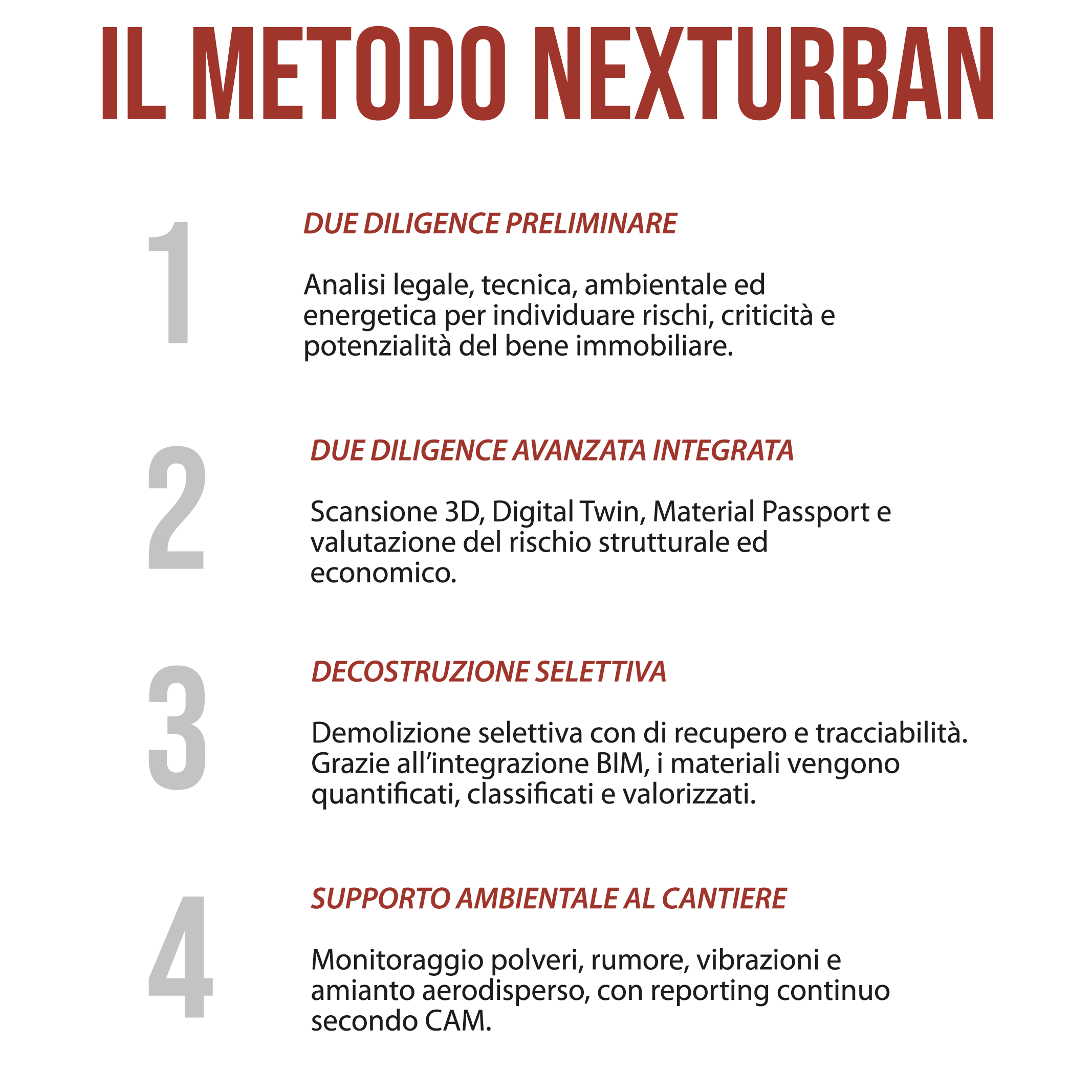 Unisce ingegneria, ambiente e digitalizzazione per trasformare la rigenerazione urbana in un processo tecnico, tracciabile e sostenibile con un metodo unico.